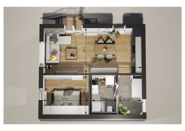 | 04 Obývací pokoj + kuchyň | 21,20 m2 |