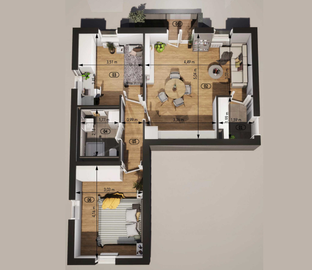 | 02 Obývací pokoj + Kuchyň | 20,30 m2 |
