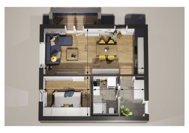 | 04 Obývací pokoj + kuchyň | 21,20 m2 |