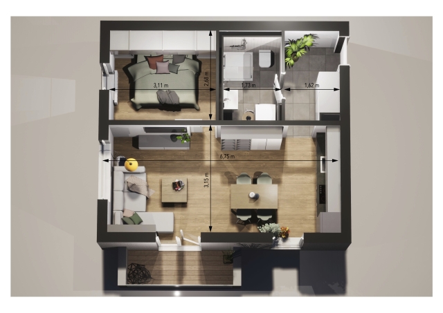 | 04 Obývací pokoj + kuchyň | 21,20 m2 |