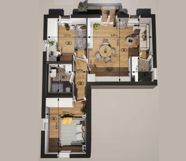 | 02 Obývací pokoj + Kuchyň | 20,30 m2 |