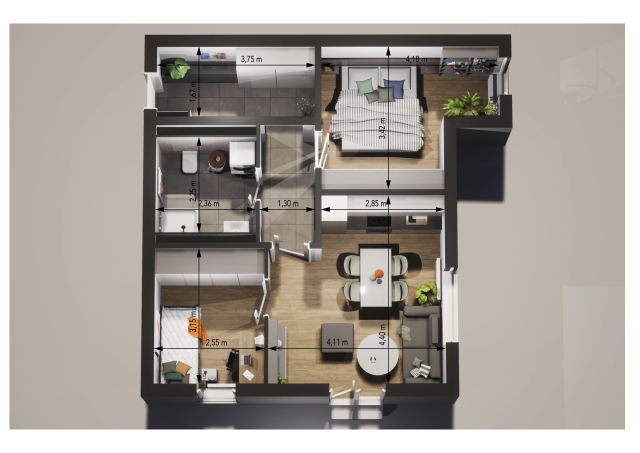 | 03 Koupelna + WC | 4,30 m2 |
