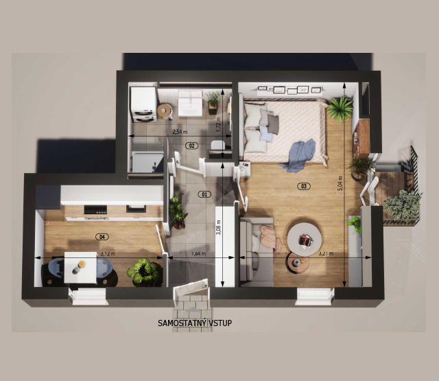 | 02 Koupelna + WC | 4,70 m2 |